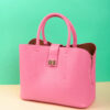 Sac porte main en cuir granuleux de couleur rose bonbon.
