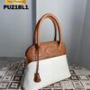 Sac à main avec anse et petit cardenas en cuir granulé deux tons de couleur blanc et marron tabac.