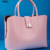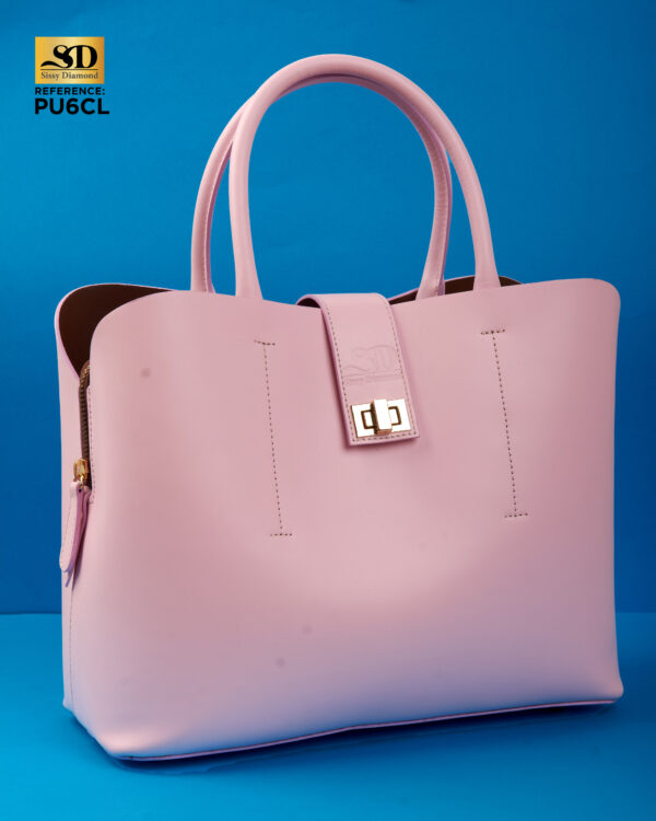 Sac porte main en cuir lisse de couleur rose dragée.