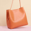 Sac à bandouliére en cuir strié de couleur orange opéra.