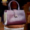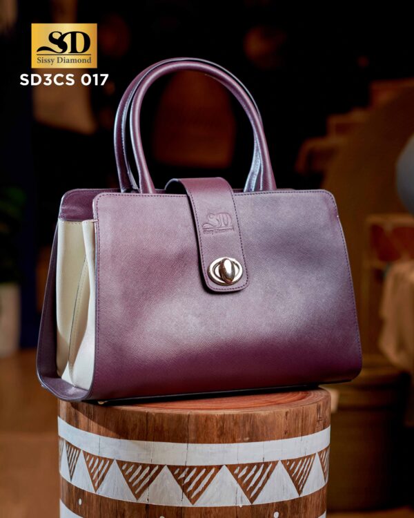 Sac à main rectangulaire avec pochettes amovibles. La modularité réinventée. Ce sac en cuir aubergine profond cache un secret : deux pochettes en blanc strié détachables. Un design intelligent qui s’adapte à vos besoins, offrant trois styles en un seul accessoire de haute maroquinerie.