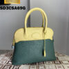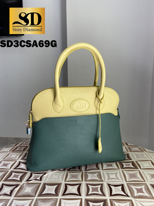 Sac à main avec anse et petit cardenas en cuir grainé de couleur jaune de naples et vert viride.