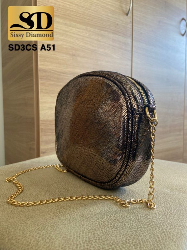 Sacoche en cuir nubuck, de couleur noir brillant facon serpent et paillettée d’or.